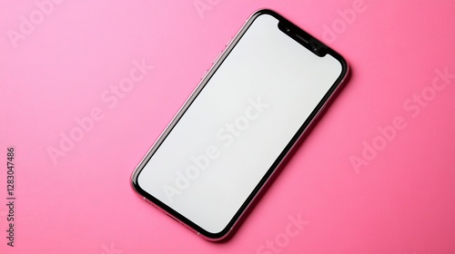 Blank white screen of a smartphone sits on a pink background, creating a minimalist, modern design that highlights digital technology and innovation.