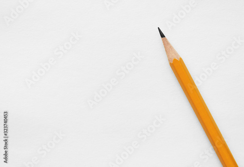 blank white sheet of paper for writing and an orange diagonal pencil, concept for back to school or note paper