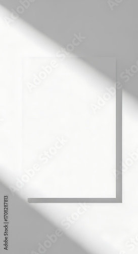 Blank White Square Card with Diagonal Shadow on Minimalist Background