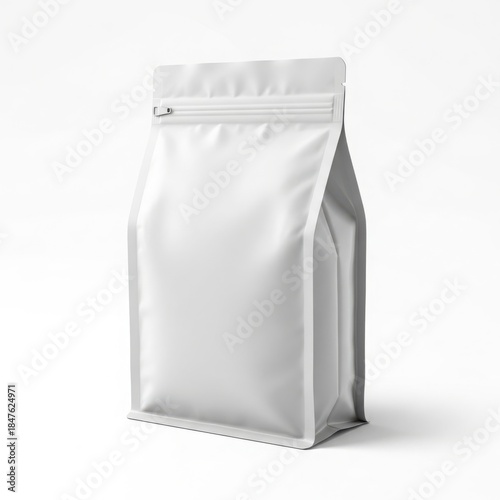 Blank white stand-up pouch packaging mockup isolated on white background