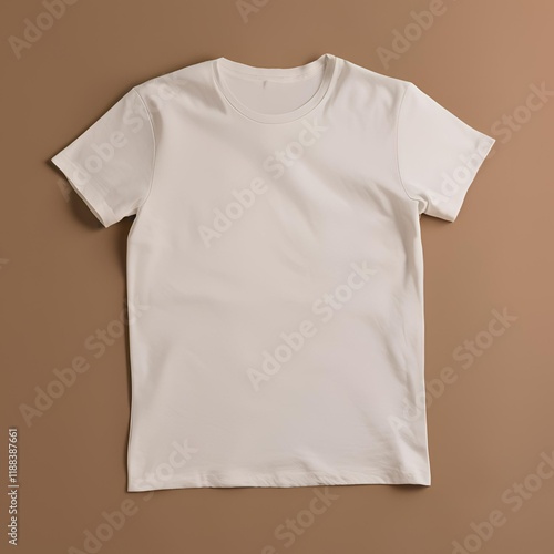 Blank white t-shirt mockup on brown background.