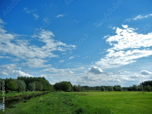 blauer Himmel und Wolken über typischer Niederrheinlandschaft