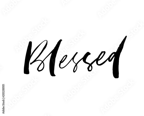 Blessed ink pen vector lettering. Modern calligraphy world. T shirt decorative print.