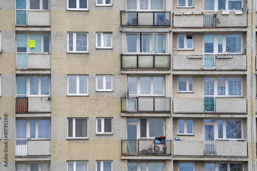Bloki z wielkiej płyty, zbliżenie na okna i balkony