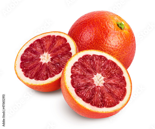 Blood red oranges isolated on white background with clipping path and full depth of field