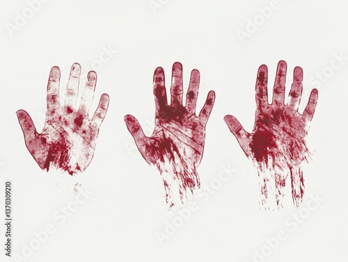Bloody handprints isolated on white background artistic representation emotional impact conceptual art