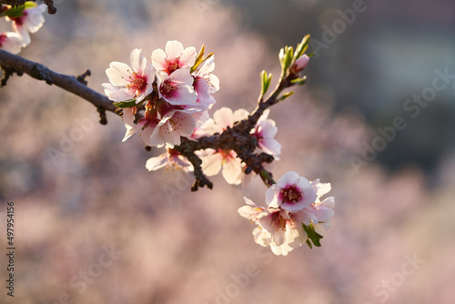 Blooming almond tree branch on a spring morning