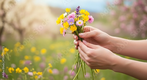Blooming Bouquet: Hand-Picked Wildflowers in Spring Meadow