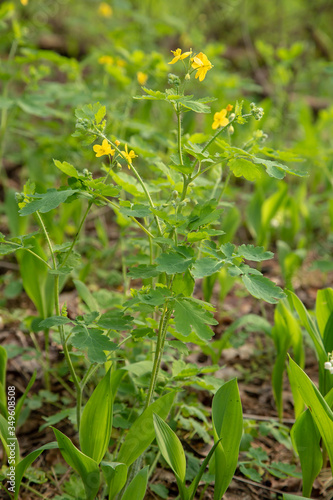 Blooming celandine. Yellow flowers of forest plants.