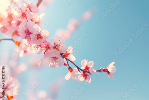 Blossoming apricot tree branches with copy space web banner: spring time concept