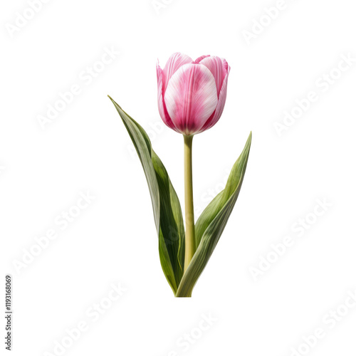 Blossoming Beauty: A solitary tulip, its petals a delicate dance of pink and white, stands proudly against a bright backdrop, a symbol of springtime's elegance.