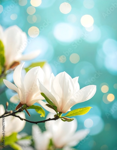 Blossoming magnolia flowers in soft light