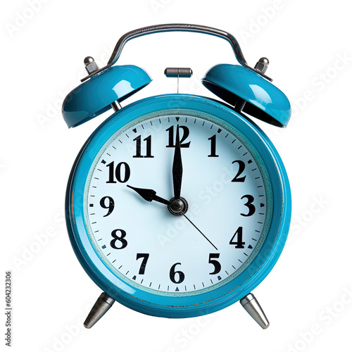 Blue alarm clock on a transparent background. Created with Generative AI Technology