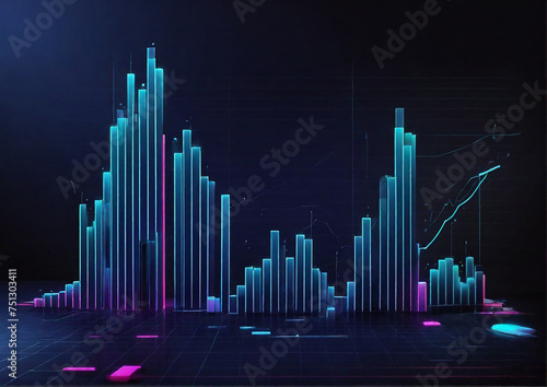 Blue and cyan neon bars chart business growth and development and financial data analysis, Stock market or forex trading graph. Generative AI