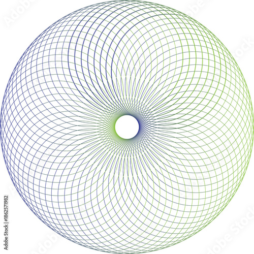 Blue and green geometric circular pattern with radiating lines and grid circle abstract