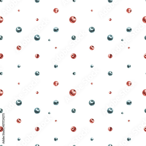 Blue and red decorative berries. Watercolor illustration hand drawn. Seamless simple pattern on a white background.