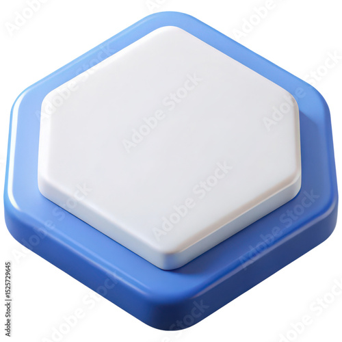 Blue and White Hexagon Button on transparent Background for Modern UI and Web Design Elements