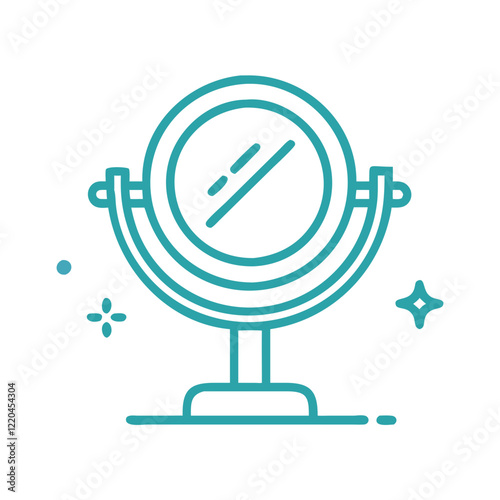 Blue and white tabletop mirror icon with sparkles