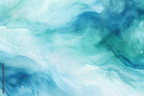 Blue azure turquoise abstract watercolor background, flow texture pattern wallpaper background