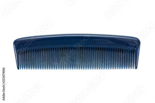 Blue barber hair comb isolated on white background.Blue hairbrush isolated