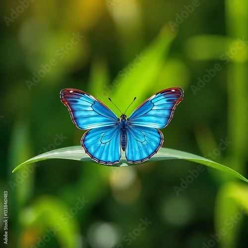Blue Butterfly on Green Leaf