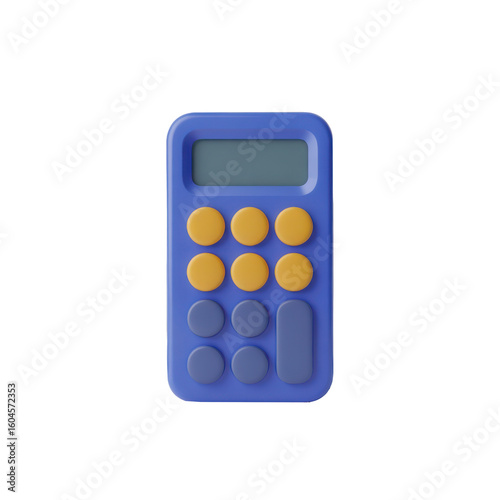Blue calculator with yellow buttons isolated on transparent background
