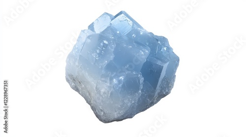 Blue Chalcedony Mineral with Crystalline Structure on White Background