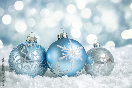 Blue Christmas Ornaments on a Light Blurred Background.