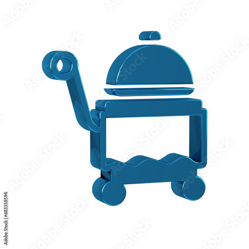 Blue Covered with a tray of food icon isolated on transparent background. Tray and lid sign. Restaurant cloche with lid.