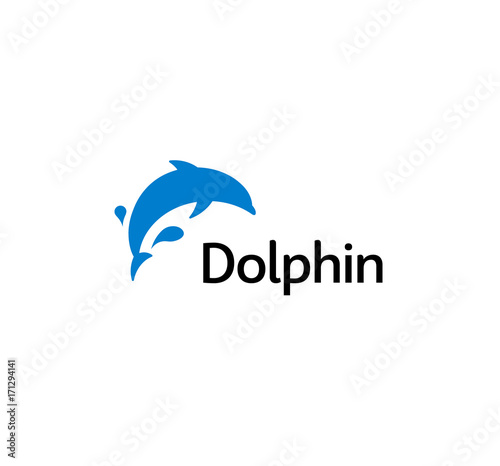 Blue dolphin jumping out of the water, a fantastic trick in the water park. Isolated vector abstract logo.