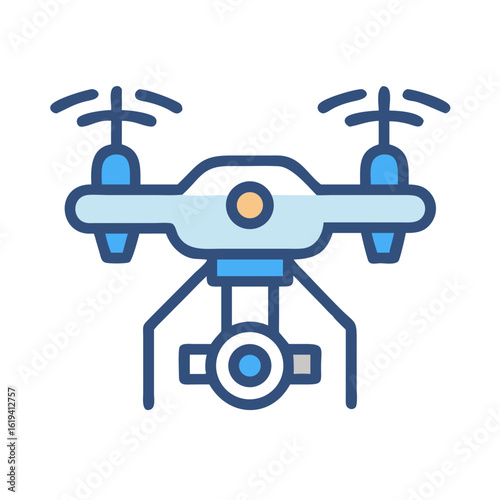 Blue drone with camera flying isolated over black background