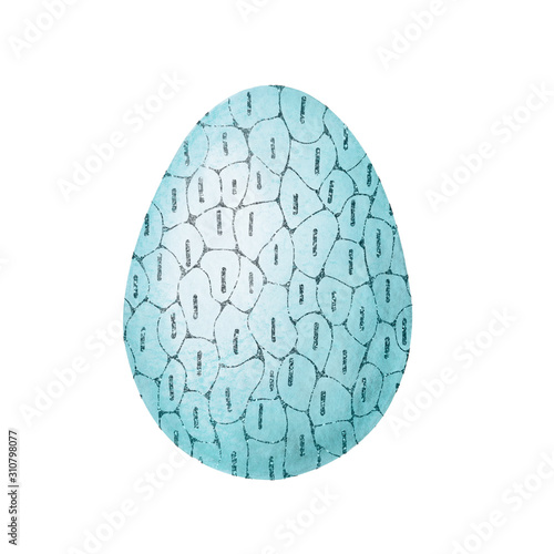 Blue egg with a silver pattern close-up for the design of Easter products. Hand drawn watercolor and graphic illustration isolated on white background. Printing wallpapers, packaging, wrappers, card