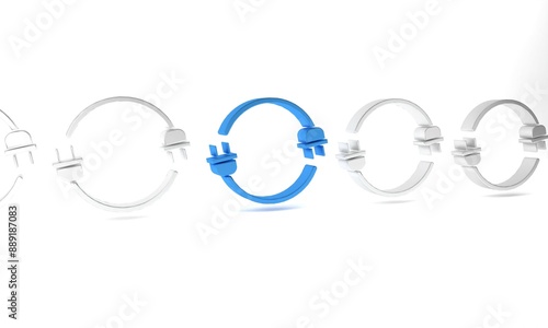 Blue Electric plug icon isolated on white background. Concept of connection and disconnection of the electricity. Minimalism concept. 3D render illustration