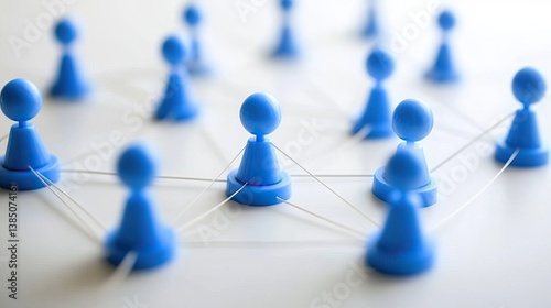 Blue figurines networked on white surface; connection concept