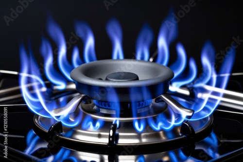 Blue flame on a black gas stove