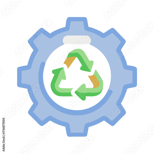 Blue gear graphic with green recycle symbol on a black background