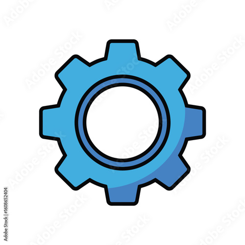 Blue gear icon with a clean design representing mechanics and industry