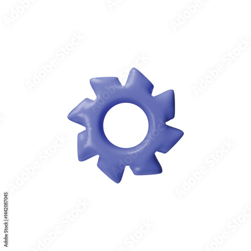 Blue gear tool 3D vector, mechanism wheel with corners, cogwheel construction element, repair or setup system settings