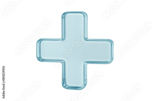 Blue glossy 3d plus sign icon representing addition, positive increase, medical care, and new growth on transparent background