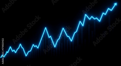 Blue glowing line graph illustrating upward trend, representing growth and positive financial performance.