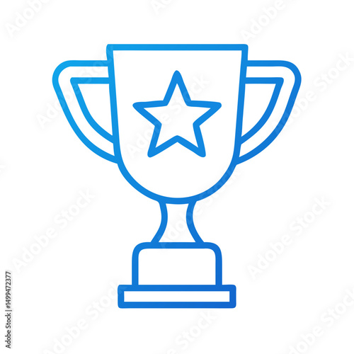 Blue Gradient Line Art Trophy Icon with Star Award