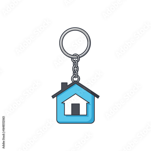 Blue House Shaped Keychain with Silver Ring and Chain Illustration