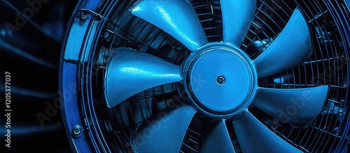 Blue Industrial Fan Close Up Detailed View