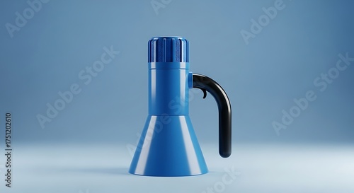 Blue Moka Pot Coffee Maker with Black Handle on Light Blue Background image