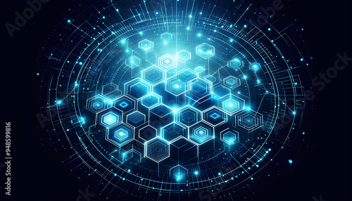 Blue neon hexagonal abstract background