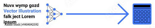 Blue network nodes connecting to an arrow leading to a calculator, illustrating data processing. Ideal for technology, data flow, AI, machine learning, analytics, computation, simple landing page