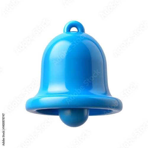 Blue notification bell 3d rendering isolated on transparent background. Cartoon plastic style icon
