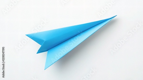 Blue Paper Airplane with Sharp Creases Isolated on White Background