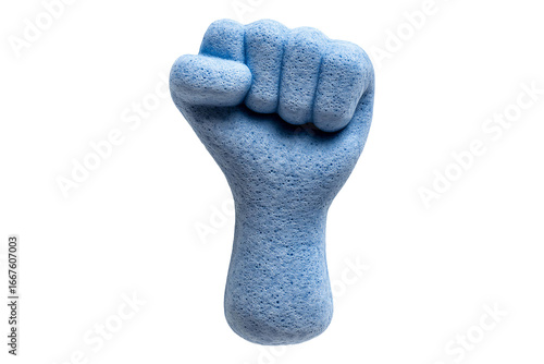 Blue Raised Fist Sculpture Isolated on a Transparent Background