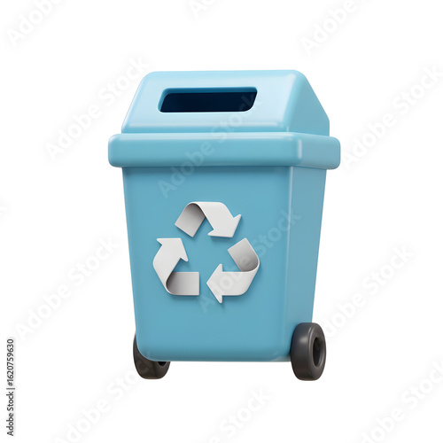 Blue Recycling Bin 3d rendered, isolated on transparent background